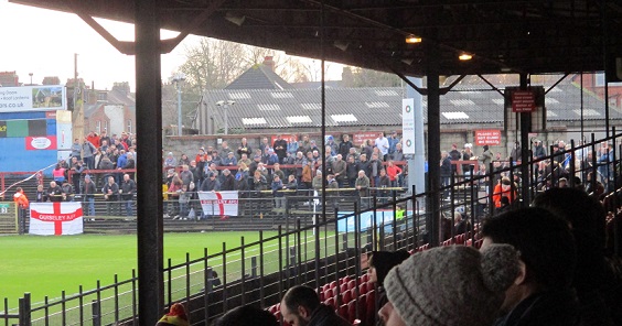 Having paid £14 at the turnstile to enter the covered terracing of the David Longhurst Stand, we wandered around to the 'Pop Side', where you could sit down for an extra quid, so we chose that option after grabbing a drink en route. The guy behind the serving hatch asked for £4.60 for two coffees! Bloody hell! This is a National League North non-league club... £2.30 for a hot drink! No wonder the cashier was behind bars, that's daylight robbery.